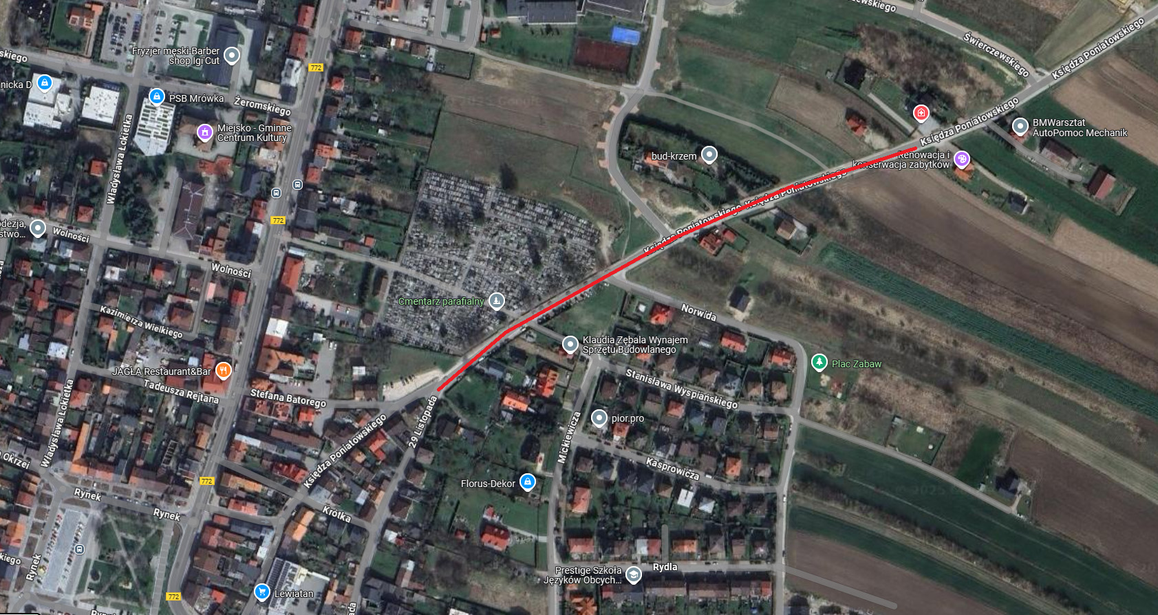 Trwa remont DP 2198K (ul. Poniatowskiego) na odcinku o długości ok. 387 m w Słomnikach. Została sfrezowana nawierzchnia jezdni. W czwartek 31 lipca 2025 r. planowane jest układanie masy wyrównawczej. Będą utrudnienia dla kierowców, podczas prowadzenia tych robót.