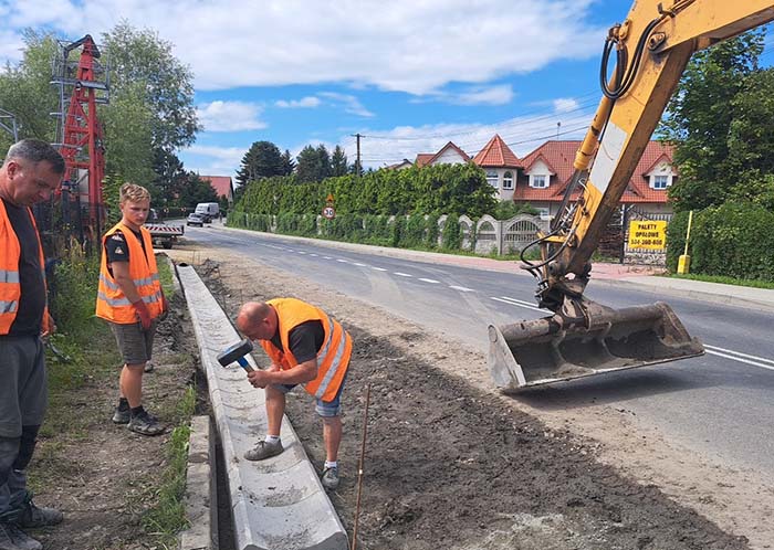Układanie korytek betonowych, ścinanie pobocza i odtwarzanie rowów przydrożnych. Od tych prac rozpoczął się remont DP 2180K w Piekarach, gminie Liszki, na odcinku o długości ok. 540 m.