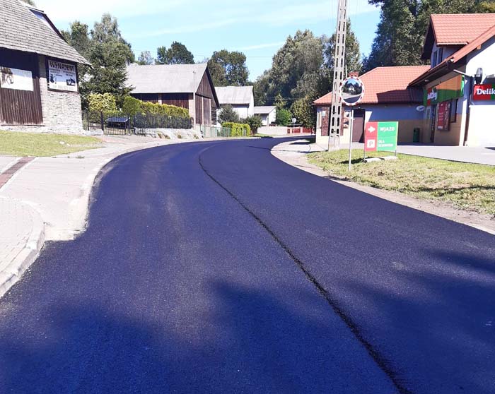 Ułożono już dwie warstwy nowej nawierzchni na jezdni drogi powiatowej nr 2126K w Racławicach, gminie Jerzmanowice-Przeginia.