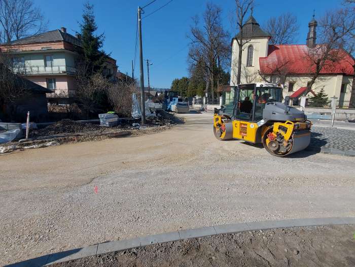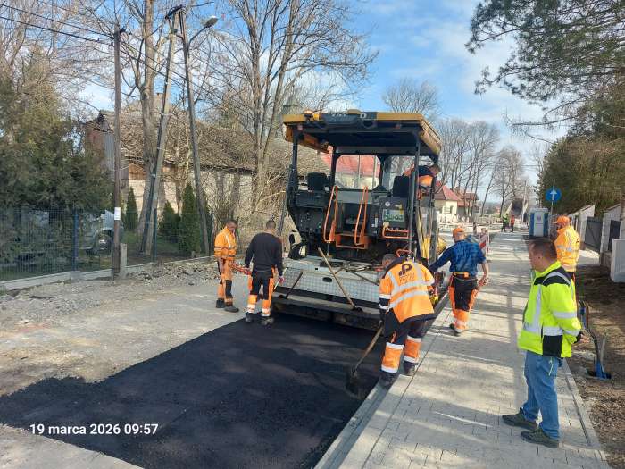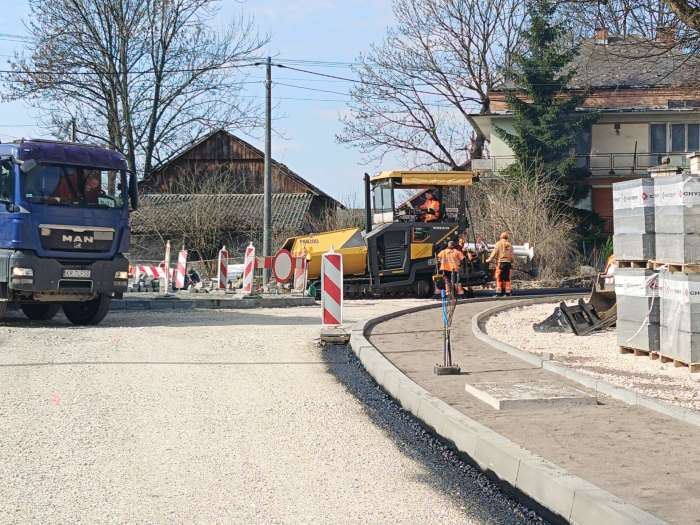 Rozpoczęły się roboty nawierzchniowe w Goszczy, gminie Kocmyrzów – Luborzyca, gdzie trwa rozbudowa drogi powiatowej nr 2154K wraz ze skrzyżowaniem. 19 marca 2026 r. układana jest podbudowa bitumiczna na jezdniach.